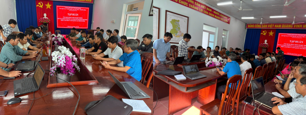 Thành phần tham gia lớp tập huấn là viên chức quản lý địa bàn thuộc Phòng Bảo tồn Tài nguyên rừng và Biển, cùng các thành viên cộng đồng nhận khoán bảo vệ rừng 6 thôn vùng đệm thuộc lâm phần Vườn quốc gia Phước Bình. Chương trình tập huấn tập trung giới thiệu và hướng dẫn sử dụng phần mềm SMART (Spatial Monitoring and Reporting Tool), công cụ quản lý dữ liệu và báo cáo tuần tra, được áp dụng rộng rãi trong công tác tuần tra, bảo vệ rừng giám sát đa dạng sinh học tại các Vườn quốc gia, khu bảo tồn trên cả nước. SMART có ưu điểm nổi bật là dễ sử dụng, linh hoạt trong thiết kế biểu mẫu và phù hợp với điều kiện làm việc tại hiện trường. Phần mềm cho phép đồng bộ và quản lý dữ liệu tập trung, giúp theo dõi, tổng hợp và báo cáo nhanh chóng, chính xác. Đồng thời, khả năng tích hợp dữ liệu không gian (GPS) giúp nâng cao hiệu quả giám sát, hỗ trợ kiểm tra, đối chiếu thông tin ngay tại thực địa.